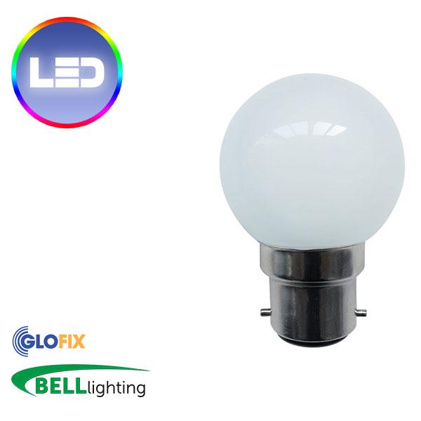 BELL Lighting 1W LED Coloured Round Ball for Outdoor Use (Bayonet Cap) This product is a 1W non-dimmable B22 coloured LED golf ball bulb available in amber, blue, green, red...